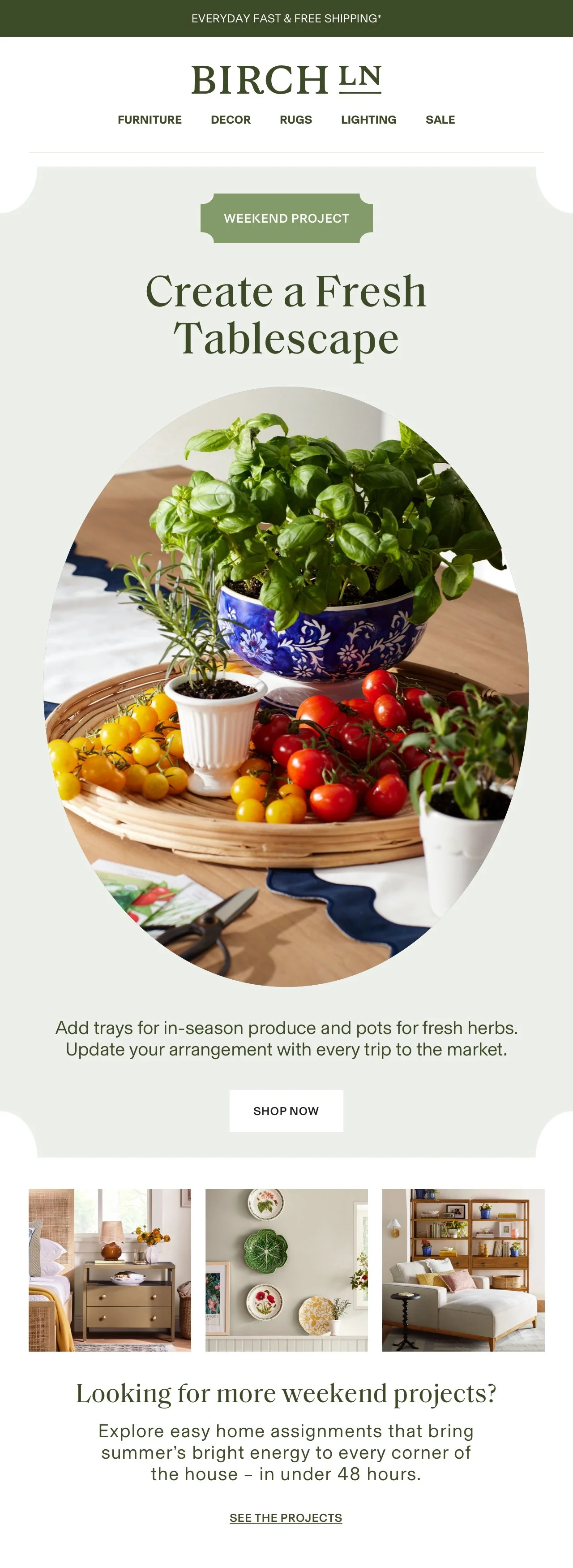 Birch Lane is a sense of place where classic style and joyful living meet. Our customers live on the Lane, and so do we. The language system utilizes phrases that paint a picture of life on the Lane—”New in the Neighborhood”, “Talk of the Town”, “Company’s Coming”, “Weekend Project”—which house specific content, like new arrivals, trends, or how-to. Our seasonal hero campaign “Celebrate” infuses joy into every season, while our hero product campaign “Come Home To” provides a repeatable vehicle to push always-on evergreen product in a get-the-look format—all while mapping back to life on the lane.